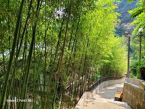 沿着 “栖鸟幽径” 漫步,翠竹修长、枝叶轻晃,阳光透过缝隙洒下,把林间小路路映得斑驳。抬头望,蓝天高远,云朵慢悠悠飘着,山间树木翠意盎然,有的已悄然染上金黄,随手一拍,都是自带滤镜的绝美秋景,连空气里都弥漫着清甜,把城市喧嚣远远甩在身后。